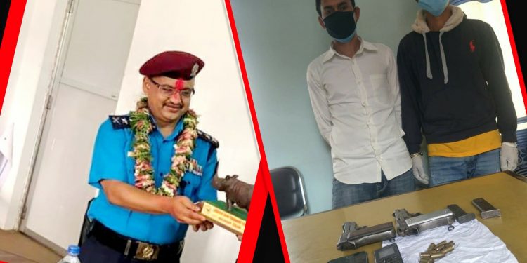 महानगरीय अपराध महाशाखाको टोलीले काठमाडौं महानगरपालिका १६ माछापोखरीबाट नुवाकोट शिखरबेंसी ६ बस्ने २७ वर्षीय विकास पण्डित र २८ वर्षीय अमर तामाङलाई नियन्त्रणमा लिएको छ । उनीहरुको साथबाट प्रहरीले दुई पेस्तोल र १० राउण्ड गोली समेत बरामद गरेको हो।