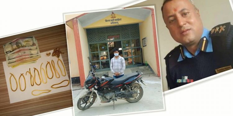 प्रहरीले ३४ वर्षीय पवन गुप्ता र उनकी बहिनी १५ वर्षीया महिमा गुप्तालाई पक्राउ गरेको हो । लु ५६ प ६३१० नम्बरको पल्सर १५० सिसिको मोटरसाइकलमा सीमातर्फ जाँदै गर्दा उनीहरुबाट सुन बरामद गरिएको छ । उनीहरु पक्राउ परेको ठाउँदेखि सीमाको भारतीय बजार चाकलचौडा ४ किलोमिटर पर छ ।