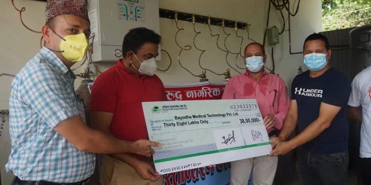 हेटौँडा । मदन भण्डारी स्वास्थ्य विज्ञान प्रतिष्ठान अन्तर्गत हेटौंडा अस्पतालमा जडान गरीएको अक्सिजन प्लान्ट खरिद गरेको रकम मकवानपुर घरजग्गा ब्यवसायी संघले बेहोरेको छ । हेटौँडा उपमहानगरपालिकाको समन्वयमा अस्पतालमा जडान गरीएको प्लान्टको खरिद गर्दाको ३८ लाख रुपैँया मकवानपुर घर जग्गा ब्यवसायी संघले बेहोरेको हो ।