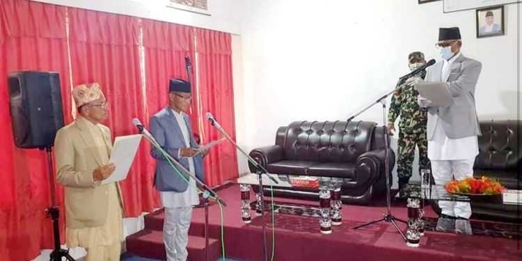 प्रदेश प्रमुख गोविन्दप्रसाद कलौनीले नवनियुक्त मन्त्रीहरूलाई पद तथा गोपनीयताको सपथ गराए । उनीहरू दुवैजना नेपाली कांग्रेसबाट सहभागी भएका हुन् ।