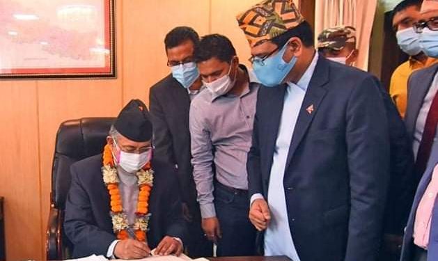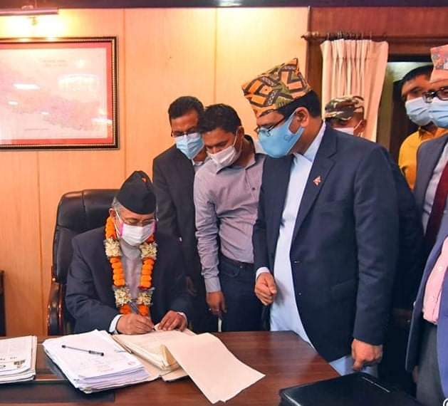 काठमाडौं । नवनियुक्त गृहमन्त्री बालकृष्ण खाँणले बुधबार कार्यभार सम्हालेका छन् । उनले केहीबेर अघि मन्त्रालय पुगेर कार्यभार सम्हालेका हुन् ।मंगलबार शितल निवासमा पद तथा गोपनियताको शपथ ग्रहण गरे पनि उनले मन्त्रीको कार्यभार सम्हालेका थिएनन् ।