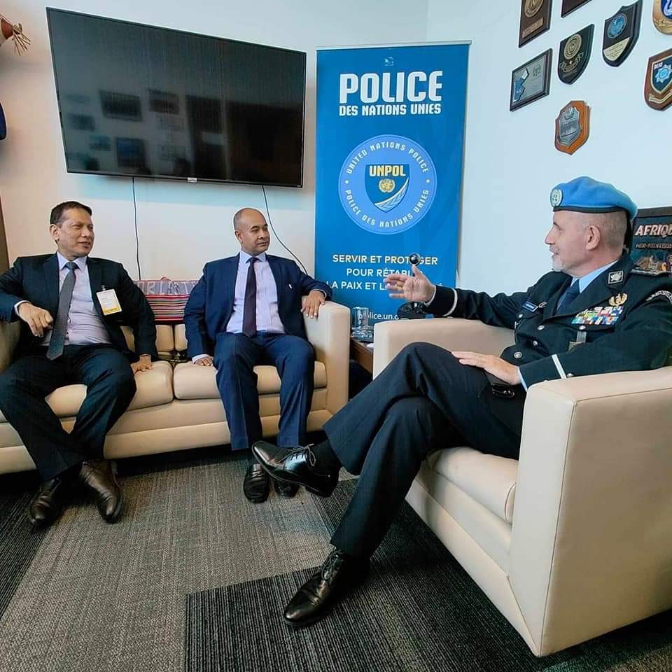 काठमाडौं । संयुक्त राष्ट्रसंघको मुख्यालय न्यूयोर्कमा सञ्चालित राष्ट्रसंघीय प्रहरी प्रमुखहरूको तेस्रो सम्मेलनमा सहभागी नेपाल प्रहरीका महानिरीक्षक धीरजप्रताप सिंह, सशस्त्र प्रहरीका महानिरीक्षक राजु अर्याल र United Nations Police Adviser