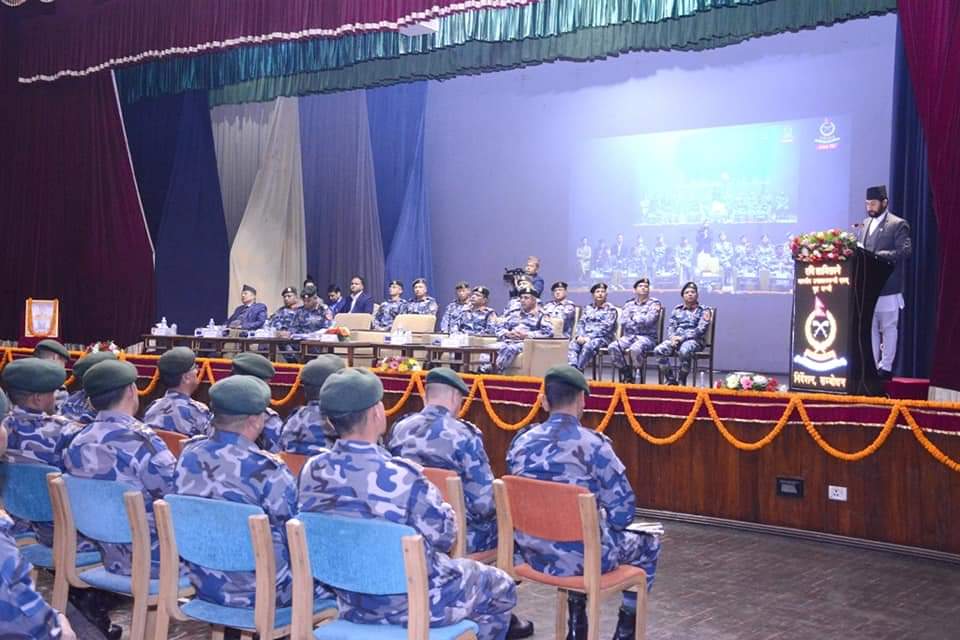 तराईको चर्को गर्मीदेखि हिमालको ओलाङ्गचुङगोला र छाङगरुको कठ्याङग्रीदो चिसो सँगै तैनाथ भएका अधिकृत तथा जवानहरूको बसाइँका लागि भौतिक पूर्वाधार कमजोर हालतमा रहेको बताउँदै आवश्यक पूर्वाधारसँगै थप व्यावसायिक बनाउन आफ्नो क्षमताले भ्याएसम्म लाग्ने प्रतिबद्धता व्यक्त गर्दै उनले भने, नागरिकको जनधनको सुरक्षा गर्ने नेपाल आमाका वीर सपुत तपाईहरुलाई सलाम छ, मेरो कार्यकालभरि मात्र होइन जीवन कालभरि तपाईले गरेको सलामको इज्जत राख्ने छु ।