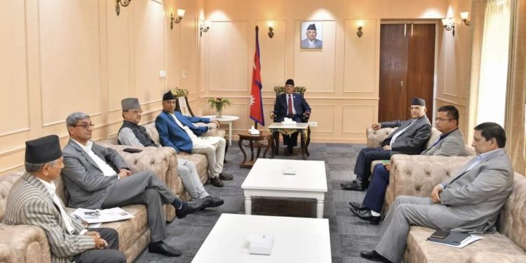 सदन अवरोध हटाउनेबारे छलफल गर्न बैठक बोलाइएको हो । बैठकमा गृहमन्त्री नारायणकाजी श्रेष्ठ, रक्षामन्त्री पूर्ण बहादुर खड्का , एमाले नेता पदम गिरी र कांग्रेस नेता रमेश लेखक सहभागी छन् ।