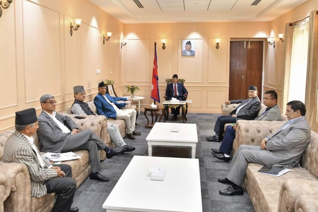 प्रधानमन्त्री तथा मन्त्रिपरिषद्को कार्यालयमा प्रधानमन्त्री पुष्पकमल दाहाल प्रचण्ड , एमालेका अध्यक्ष केपी, शर्मा ओली र नेपाली कांग्रेसका सभापति शेरबहादुर देउवाबीच छलफल भइरहेको हो ।
