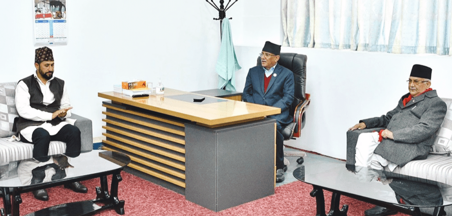 काठमाडौं । प्रधानमन्त्री पुष्पकमल दाहाल ‘प्रचण्ड’, नेकपा (एमाले)का अध्यक्ष केपी शर्मा ओली र उपप्रधान एवं गृहमन्त्री रवि लामिछानेबीच छलफल जारी छ । प्रधानमन्त्रीको सरकारी निवास बालुवाटारमा तीन नेताबीच छलफल भइरहेको हो ।